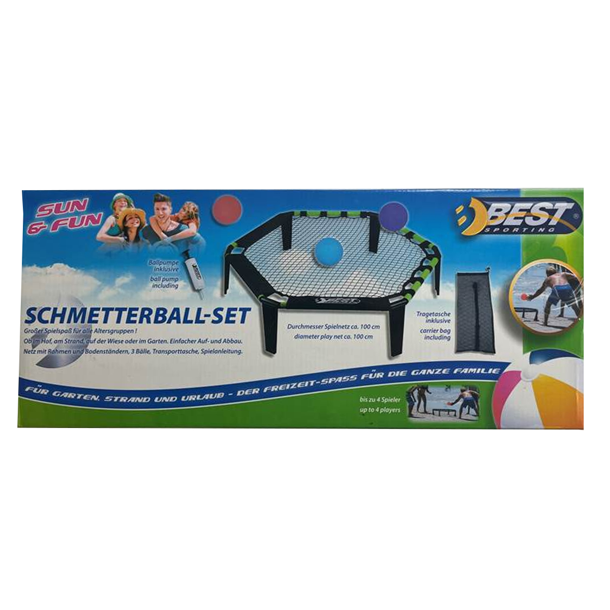 Roundnet-Set. Du plaisir pour tous les ages. Que ce oit dans la cour, sur la place, sur la prairie ou dans le jardin. Facile à montrer et à demonter. Filet avec cadre et supports au sol, 3 balles, sac de transport, instructions de jeu.