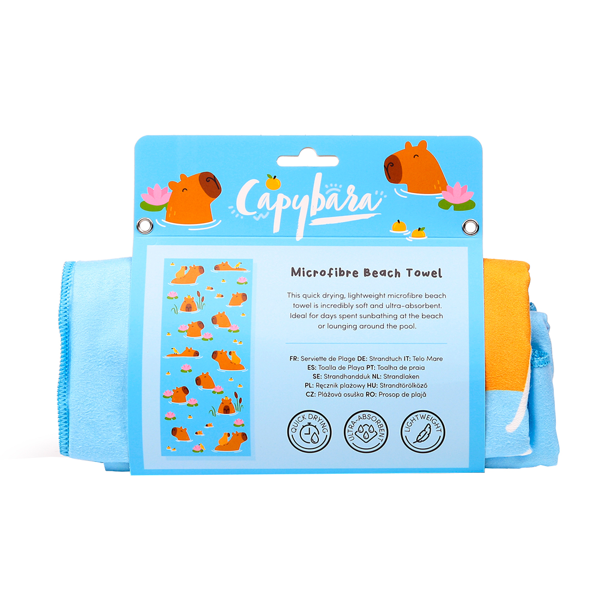 Serviette de plage en microfibre avec Capybara le cochon d'eau amusant, dimensions 180x85 cm, Matière: 88% polyester, 12% polyamide