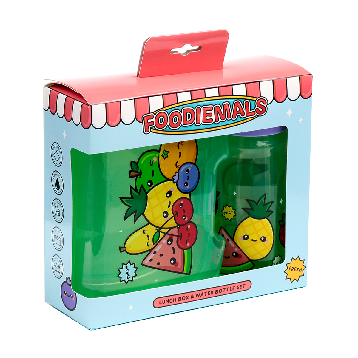 Foodiemals set de bouteille et boîte à lunch, dimensions de la boîte à lunch: 16.5x13.5x7 cm, bouteille: 5 dl