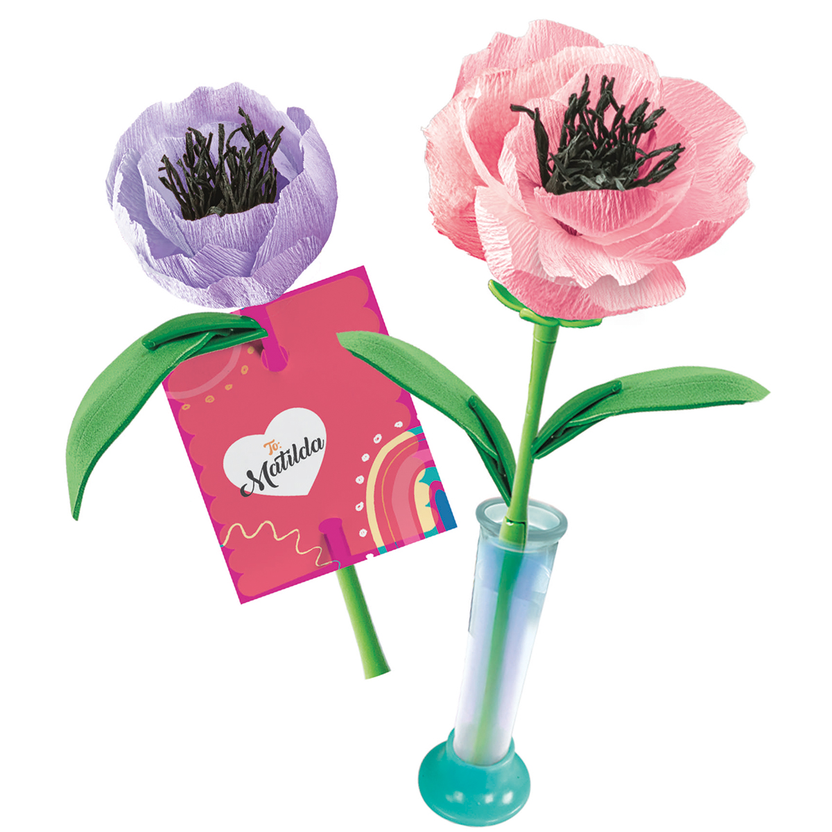 Une création originale pour assembler deux fleurs et les personnaliser avec des couleurs différentes. Un kit pratique et richement assorti contenant des tiges, des pétales à colorer, des corolles à composer et le porte-fleurs à assembler et à décorer. Âge recommandé: 7+.