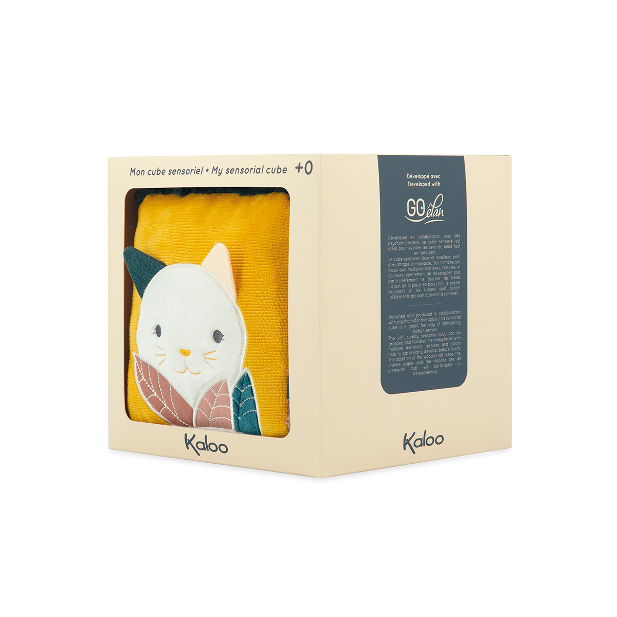 Adapté dès la naissance, ce grand cube de 17 cm a été pensé pour stimuler les sens et éveiller bébé. Une activité stimulante sur chaque face ! Une grande variété de textures (fourrure bouclée synthétique, velours côtelé, bois ...) pour stimuler le sens du toucher. Des rubans et un bel anneau à saisir pour développer la préhension. Du papier bruissant pour stimuler l'ouïe et des illustrations pensées dans des coloris adaptés à la vue de bébé. Matière(s) Fourrure synthétique, micro-velours, velours, bois de hêtre certifié FSC. Rembourrage 100 % polyester recyclé certifié GRS Lavage à la main en surface uniquement
