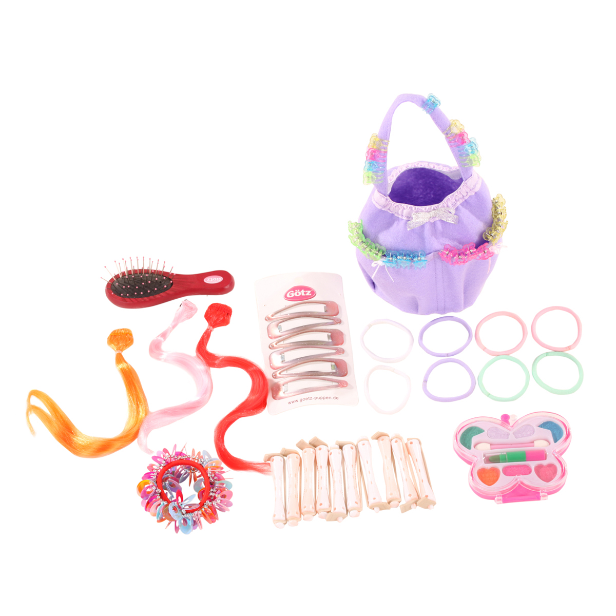 Götz tête à coiffer et maquiller, 58pcs., cheveux bruns, yeux bruns, avec maquillage et d'accessoires pour cheveux, antidérapant grâce aux ventouses.