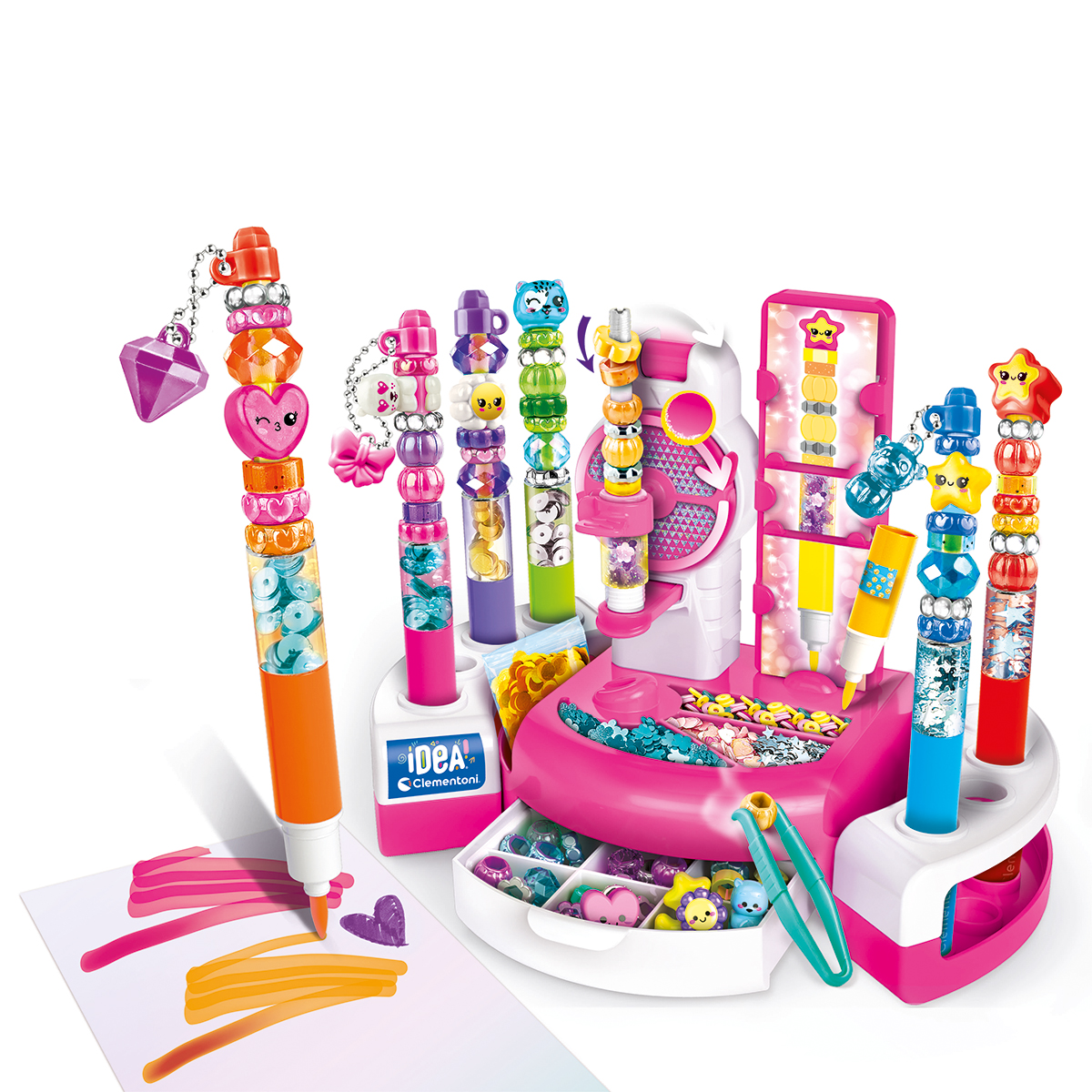 Creative L'atelier des stylos. Un atelier créatif original pour s’amuser à créer plein de stylos colorés! Ce coffret te permettra de créer et de personnaliser des stylos avec plein d’accessoires et de décorations inclus. Avec une base pratique et de nombreux instruments pour réaliser facilement tes créations.