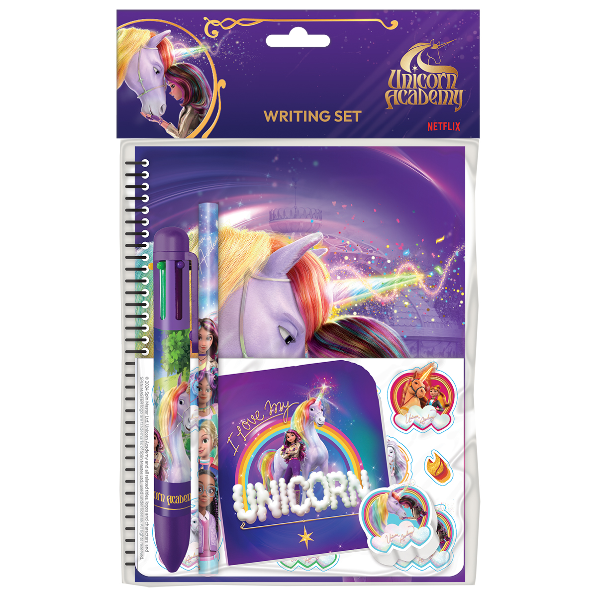 Set d'écriture - avec carnet à spirales A5 avec/60 feuilles lignées (350gsm), feuille d'autocollants, crayon à papier, gomme, petit bloc-notes avec 40 feuilles.